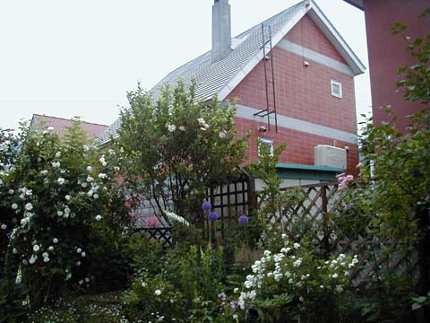 リンゴの木にからまるつる薔薇。イギリスのガーデン誌でよく目にするこの風景に憧れて、わが家のヒメリンゴの木につる薔薇Albertineをからませてみました。まだまだイギリスは遠い?