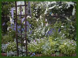 ヴィタ・サックビル・ウェストは白だけではなく、シルバーやクリーム色も取り入れてあの見事なシッシングハーストのホワイト・ガーデンを作りました。"In Your Garden"という本の中で、ホワイト・ガーデンの試作を始めた頃のヴィタはこの庭を「グレイ、グリーン、ホワイト・ガーデン」と呼んでいました。以前私もブルーだけの花を集めて庭を作ったことがあります。でも残念ながらさみしくて寒々しい庭になってしまいました。そして私も気づいたのです、ブルー・ガーデンにもホワイトとシルバーカラーが必要なのだということを。
