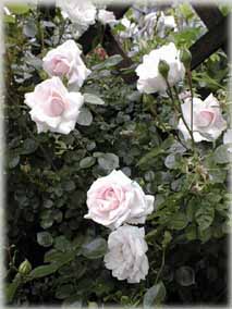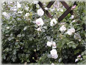 | 薔薇戦争の白薔薇という説もあるAlba Maxima。古くからある薔薇のせいか丈夫で病気知らずの薔薇です。手のひらサイズの花は香りよく、咲き始めのベビーピンクにはいつもうっとりします。 | ![]() |