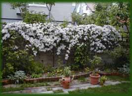 最初の3年間、毎年冬枯れするクレマチスを何度もひっこぬこうとする私を止めたのは、友人のこの一言でした。「クレマチスは5年待ちなさい。」そしてその通り、いまや我が家の自慢のクレマチスとなりました。