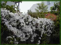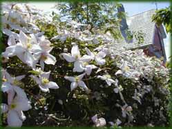 玄関前に植えたクレマチス・モンタナ・エリザベスもなんとか立派に育ちました。