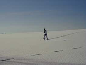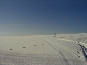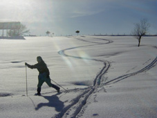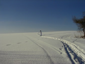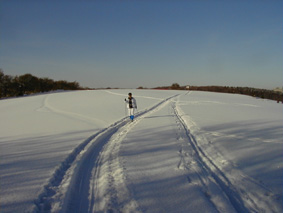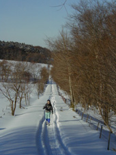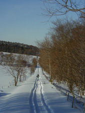 冬はクロスカントリーに絶好の場所となります。 「さあ、行くぞ〜!」と2つの影も行く手を見つめて。 | ![]() |