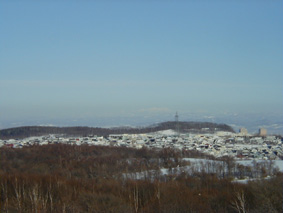 ![]() | 我が家もどこかにあるはずなんですが。 遠くに雪をいただいた夕張岳が。 |