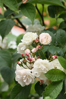 雨に打たれて香りも透明感も一層際だちます。私の庭にはこんな小輪の薔薇があちこちに。西のアーチは、紫の香るファイルヘンブラウ。南の正面には、蕾の縁がほんのり紅色の純白の薔薇、群星。今シーズンはこんな小輪の薔薇をご紹介しましょう。 ************************************