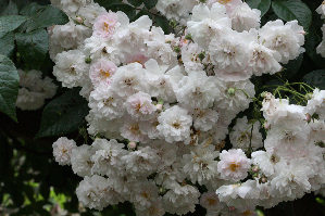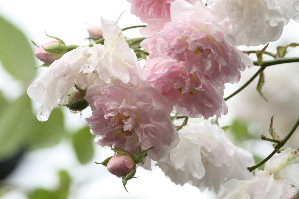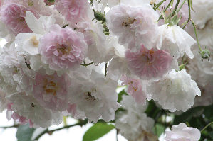 春爛漫!、、、と錯覚しそうですがPaul's Himalayan Muskの花盛りです。ほとんど白薔薇のような淡いピンク色は、春の八重桜とはまた違い、透き通るような優しい風情。