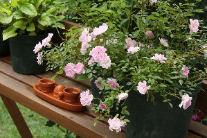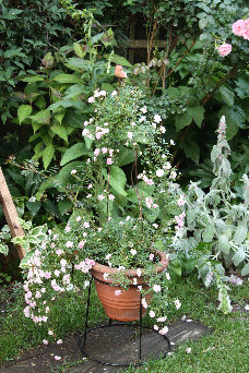 こちらはスタンダード仕立て。ポールの先端に素焼きのフクロウ。 枝がしなやかなので、どんな形にも 仕立てられます。 |