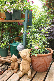 クマの右横はバレリーナの鉢植え。 |