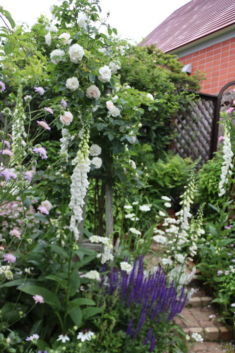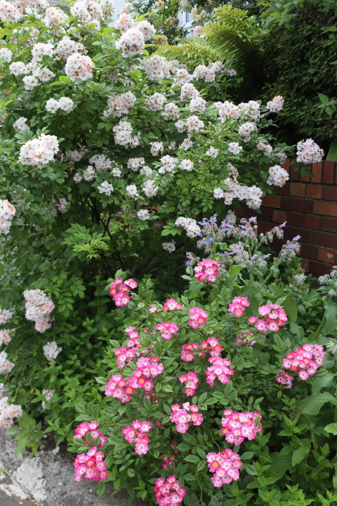 家側のヒマラヤンムスクと共に、ほんわかソフトカラー・ガーデンが出現します。