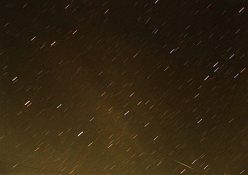 左側に獅子座の大鎌が見えます。右下うみへび座付近に飛ぶ小さな流星。