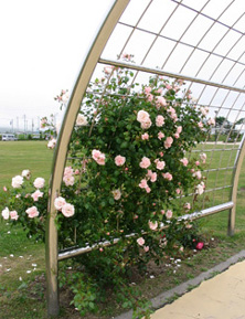 ![]() | アーチの薔薇はニュードーン。 優しい風情なのに丈夫で病気知らず。 北海道でも古くから植えられました。 |