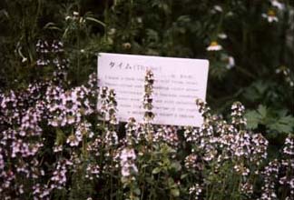 * タイム。妖精の女王タイテーニアの花の寝所はタイムが咲き乱れる堤にあるのだとか。夏の夜の夢に登場するハーブです。