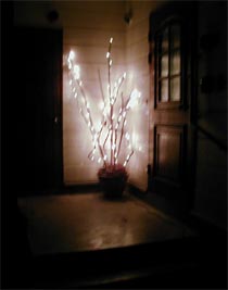![]() | 彩りの少ない冬の愉しみはイルミネーション。 今年は枝打ちした木を組み合わせて。 |