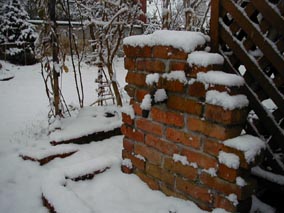 レンガの水場に雪ってお似合いですね、新鮮な発見。 | ![]() |