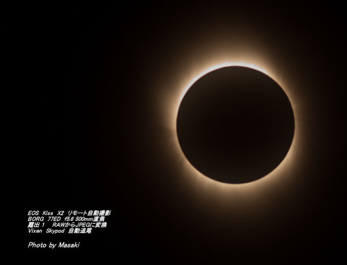 漆黒の空、幻想的なコロナが輝く