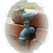 ■■■ そもそもの始まりはイギリスから取り寄せたかわいいアヒルの水道栓。これに合う水場を作りたい、と思ってしまったからさあ大変です。夫の受難が始まりました。なんたって下水工事から始めなければならなかったのですから。おかげで夫は週末ずっと穴蔵暮らし。感謝感謝です。努力の甲斐あって、おしゃれなかわいい水場ができあがりました。■■■ |