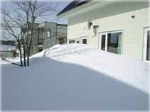 窓から見える景色もひたすら雪、雪、雪。 ここは屋根の雪が落ちるため、3mもの雪山になっています。この下には秋に植えたばかりのイギリスから来た苗、