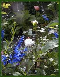 Vita Sackville-West called her splendid white garden "the grey, green, and white garden" in her book, In Your Garden. She found a white garden needed not only white flowers but also silver and green colors. In the same way, I noticed white and silver colors were necessary for a blue garden.