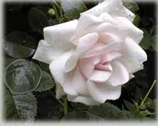 ![]() | ![]() | 清楚な白い花の中心には吸い込まれそうな薄緑色のグリーンアイが。グリーンアイの薔薇はほかにもありますが、この花ほど美しく映える薔薇を他には知りません。白薔薇の中でもっとも美しいという人もいるほど。香りもよく蕾の形も印象的です。 |