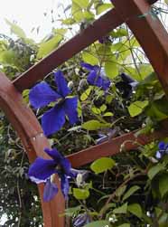 このアーチには紫薔薇ファイルヘンブラウとラベンダードリームが這わせてあります。紫の薫るアーチをめざして、さらにジャックマニーを植えました。これは正解!よく伸び、花の時期も長く、思惑どおりの出来映えになりつつあります。(?)