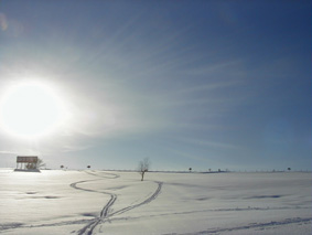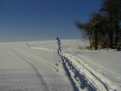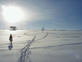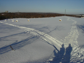 冬はクロスカントリーに絶好の場所となります。 「さあ、行くぞ〜!」と2つの影も行く手を見つめて。 | ![]() |