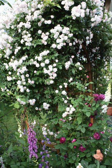 Paul's Himarayan Musk Paul's Himarayan Musk looks like white snow. It becomes the symbol rose of my garden. |