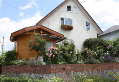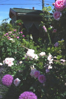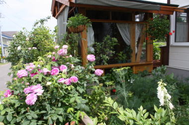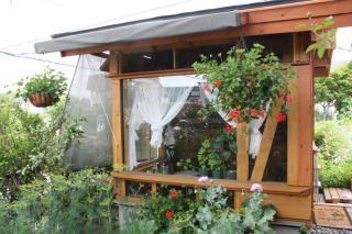 2013年6月、3年がかりの大プロジェクト、ガーデンシェッドが完成しました。基礎だけはプロにお願いしたのですが、棟上げは友人達の協力で、作製は夫ひとりもくもくと、窓ガラスのはめ込みだけは私も少々お手伝い、と全く手造りの庭小屋です。
