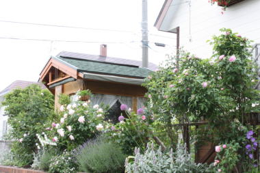 ガーデンシェッド周辺のイングリッシュローズも咲きはじめました。