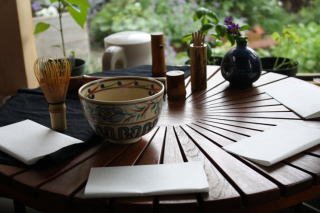 ご近所の心得のある方がお茶のお道具持参で、略式お茶会を開いてくださいました。