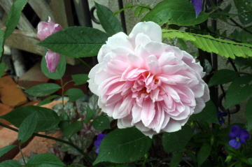 この繊細な薔薇はDavid Austinのつるバラ。棘もなく樹高もほどほどで細葉、淡いピンクと限りなく優しいのに、冬枯れもせずとっても丈夫。しかも四季咲き!今一番のお気に入りです。