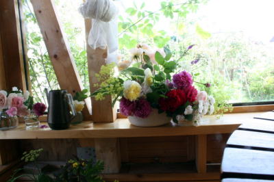 ガーデンシェッドで薔薇三昧。友人とあるだけの薔薇を切ってアレンジを楽しみました。