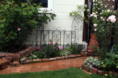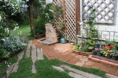 家の南面にもレンガの道が出来ました。この内側にもミニ・ガーデン。
