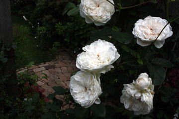 そんな薔薇のために、と2年がかりで整地したレンガの道ともしっくり溶け合いました。