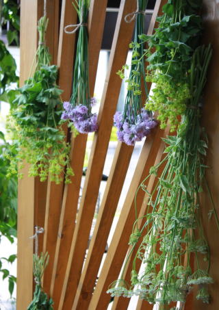 夏のリースは気分しだい。出来上がりもその時咲いている花しだい。
