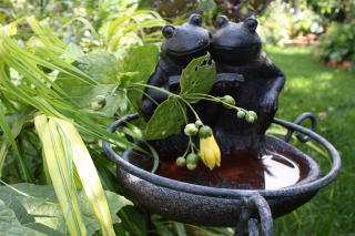 カエルの水盤もご愛嬌〜。
