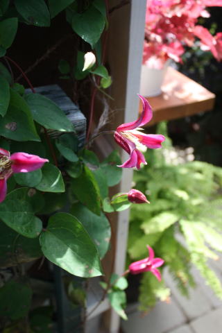 薔薇も花々も地味な色合いの花が好みの私ですが、クレマチスはこうしてみると意外と派手好み?