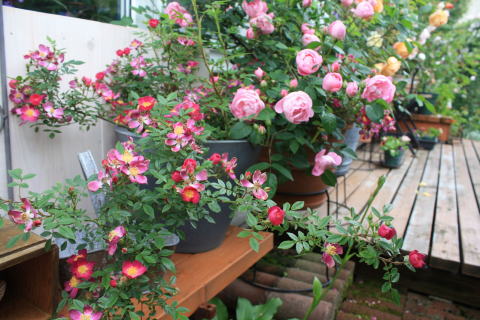 赤薔薇はオールドローズ中心の庭では目立ち過ぎるため、レッドコーナーにまとめました。