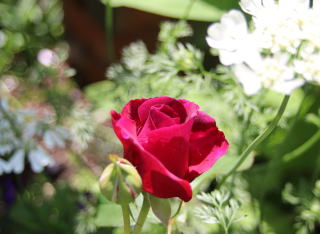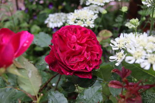 この薔薇も昨年レディ・ソールズベリーと一緒に家に連れて帰りました。中央アーチ下の新コーナーの主役を探していて。 大正解!ここまで重厚感のある薔薇は今までうちにはありませんでした。ベルベット色とはこんな赤を言うのでしょうか。蕾も開いた花も気品があります。50cmx50cm。微香。 新顔さんなので冬越しの情報はまだお待ちくださいね。繰り返し咲き。 |
