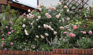 西のボーダー花壇は我家で一番日当たりの良い場所。薔薇も正直で、ここの薔薇が樹形も花付きも一番です。シーズンにはこの豪華さ。