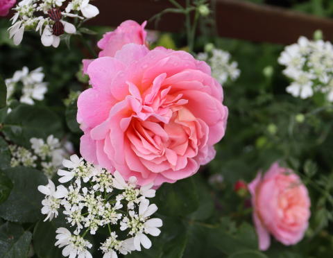 迫力のある樹形ですが、この小ぶりなピンクなら、さわやかなウェルカム・ローズになってくれそう。