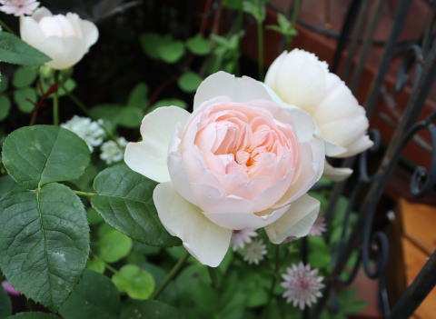 20年以上ここに植えていたコンスタンス・スプライをとうとう断念し、窓辺を彩る薔薇として2023年に新たに植えたジャスミーナ。