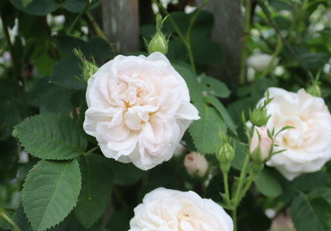やっぱり我が家のシーズンはこの薔薇が咲くと最盛期です!白薔薇の「群星」。