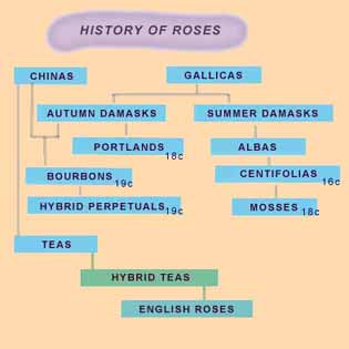 薔薇の歴史は古く、3,500万年前の薔薇の化石なども見つかっているようです。クレタ島では、先端に一重の薔薇があしらわれている4000年前に作られた金のピンが発見されています。また同じ頃クレタ島のクノッソスの壁画にも、フレスコ画の薔薇が描かれました。このように薔薇を広く捉えると、原種薔薇も含む様々な古代の薔薇もオールドローズと呼ぶことができるのかも知れません。 |