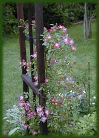 四季咲きのつるばらということでアーチの 薔薇として植えたのですが、北海道では つるにならないようです。でも四季咲き性は抜群で 優しい雰囲気のある花を秋まで見せてくれました。 |