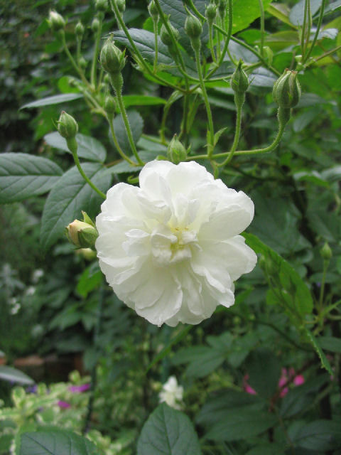 樹高は70cmほどの低木で、ガーデンのアクセントにこんな白薔薇はいかが?