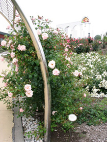 ![]() | アーチの薔薇はニュードーン。 優しい風情なのに丈夫で病気知らず。 北海道でも古くから植えられました。 |