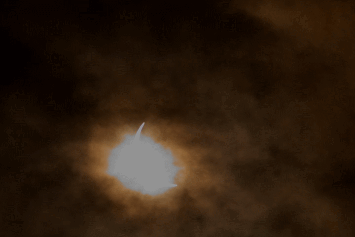 流れる雲の隙間から、突然始まった皆既日食 劇的な数分間の奇跡でした